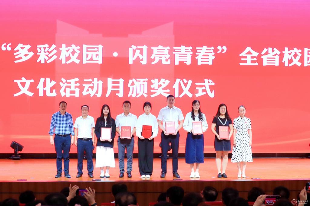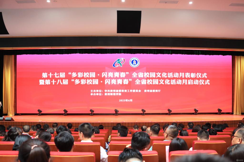 6月26日,第十七届“多彩校园·闪亮青春”全省校园文化活动月表彰仪式暨第十八届“多彩校园·闪亮青春”全省校园文化活动月启动仪式在贵州师范学院举行。省委教育工委副书记、省教育厅党组成员杨未出席并讲话。省教育厅宣传处副处长朱伟宣读《省委教育工委省教育厅省精神文明办省委网信办省文化和旅游厅团省委关于公布第十七届“多彩校园·闪亮青春”全省校园文化活动月获奖师生名单的通知》。万象城官网党委副书记刘文,校党委委员、党委宣传部(精神文明办)部长(主任)、党委统战部部长陈颖,校团委书记王妤煜及获奖师生代表参加。