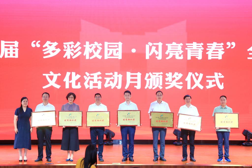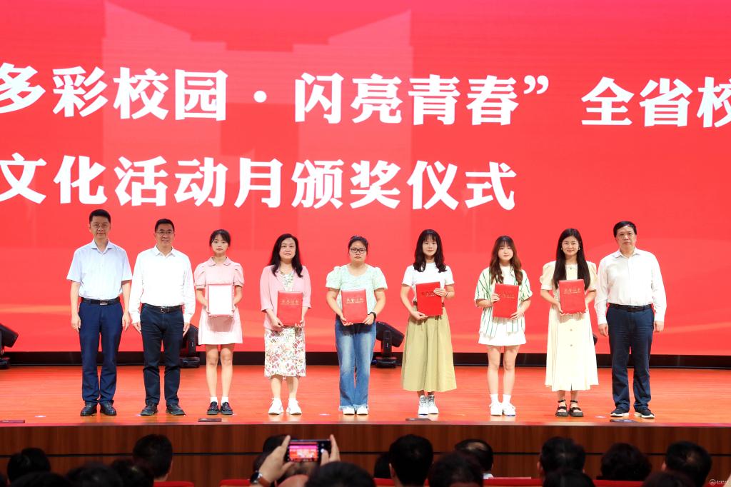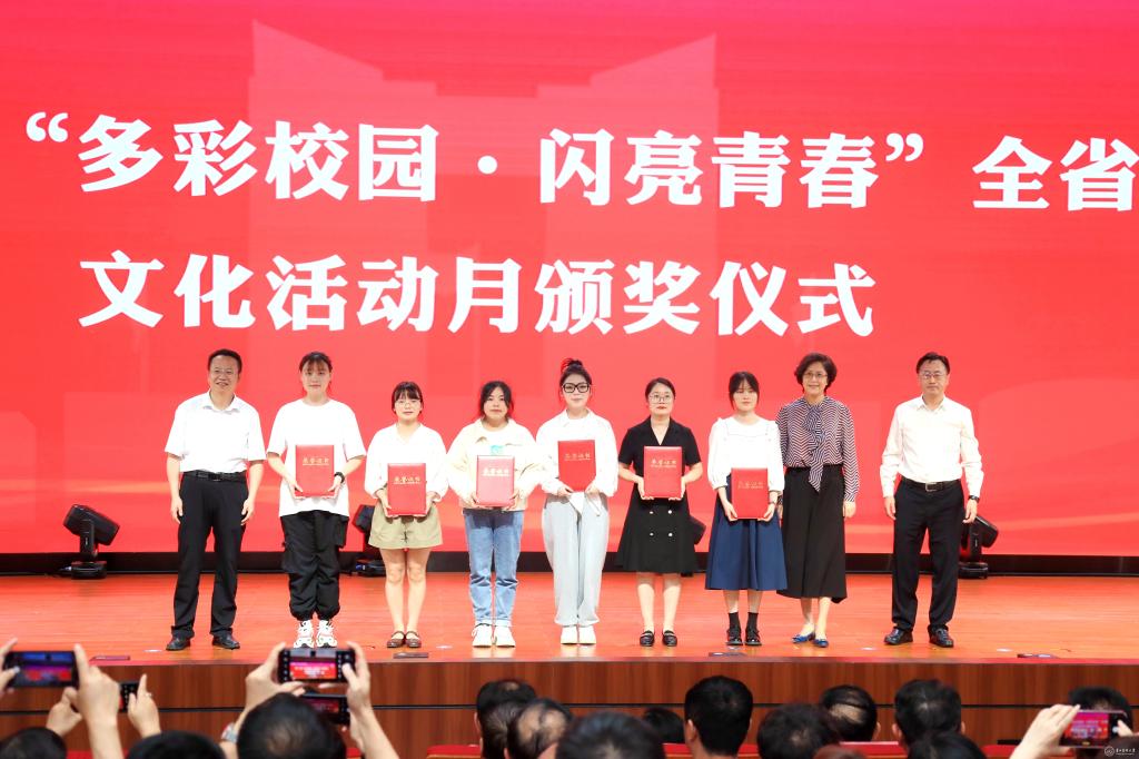 会上,对第十七届“多彩校园·闪亮青春”全省校园文化活动月获奖代表进行颁奖。刘文作为颁奖嘉宾为获奖代表颁奖,并代表学校领取优秀组织奖奖牌。