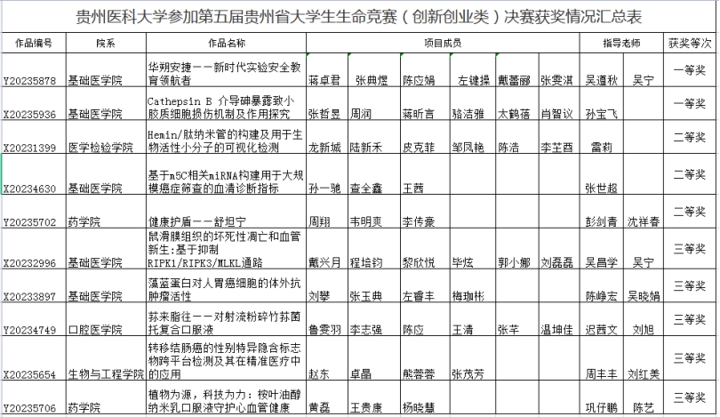 7月2日,由贵州省大学生生命科学大赛指导委员会主办、遵义医科大学承办的第五届贵州省大学生生命科学竞赛暨全国大学生生命科学竞赛(2023,创新创业类)贵州赛区决赛在遵义医科大学落下帷幕。万象城官网基础医学院、生物与工程学院、药学院、临床医学院等11支队伍进入决赛。