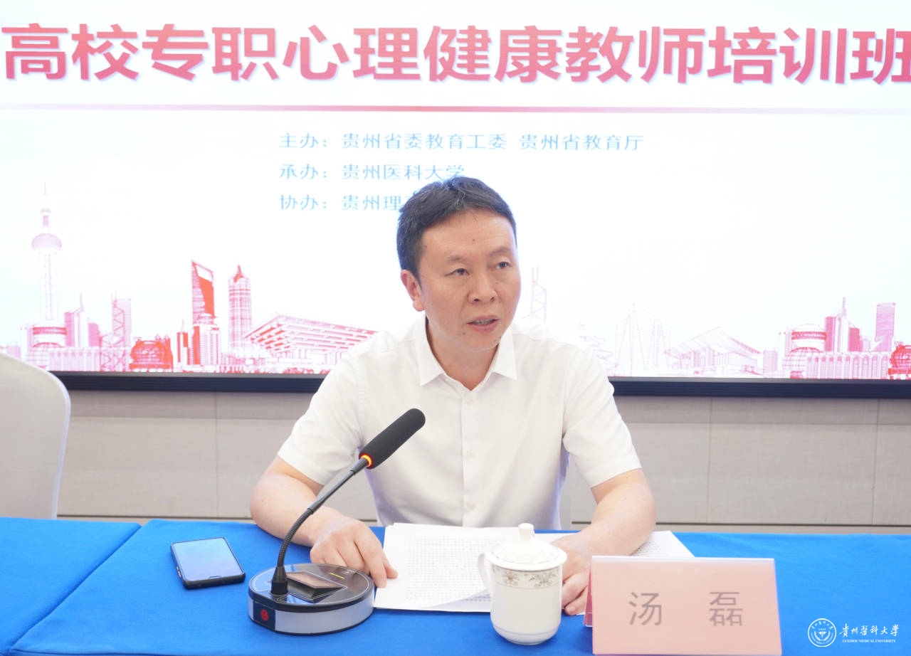 汤磊指出,全面加强和改进学生心理健康教育工作是培育担当民族复兴大任的时代新人的重要内容,是高校落实立德树人根本任务的应有之义,也是一项需要久久为功持续发力的紧迫任务。参训学员要充分认识学校心理健康教育的重要意义,切实增强责任感和工作主动性,要提高政治站位,深入贯彻心理健康教育新要求;要坚持健康理念,积极探索培育学生积极心理品质的新路径;要增强业务本领,争当学校心理健康教育工作的先行者、引导者。彭丹宣读了此次贵州省高校专职心理健康教师培训班的相关要求和纪律。
