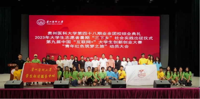 7月10日,万象城官网2023年大学生志愿者暑期“三下乡”社会实践活动出征仪式、第九届中国“互联网+”大学生创新创业大赛“青年红色筑梦之旅”动员大会在南校区礼堂举行。校党委副书记汤磊,校党委委员、党委宣传部(精神文明办)部长(主任)、党委统战部部长陈颖出席,党委学生工作部部长王韬,党委研究生工作部部长康颖倩,校团委书记王妤煜,科技创新与产业发展处处长涂波,各学院党委副书记、各学院团委负责人、各实践队全体成员、“青年红色筑梦之旅”参赛团队参加。会议由校团委副书记胡洪瑞主持。