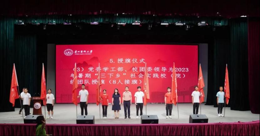 陈颖为暑期“三下乡”社会实践活动省级专项团队授旗。