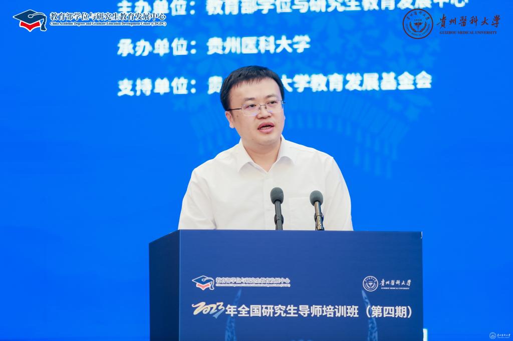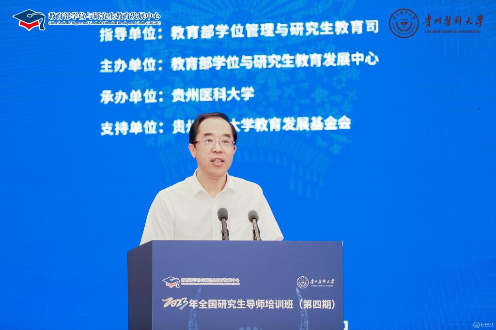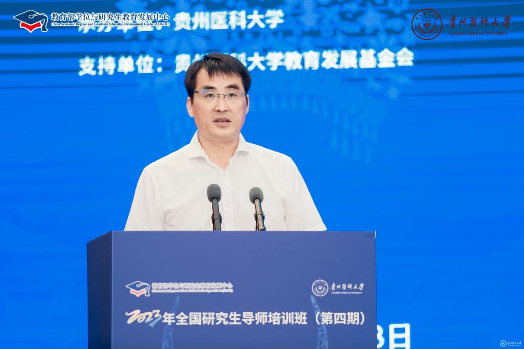 教育部学位与研究生教育发展中心副主任亓彦伟,贵州省教育厅党组成员、副厅长战勇,学校党委副书记、校长罗鹏出席开班仪式并致辞。教育部学位中心研究生工作处处长周学军主持开班仪式和结业仪式。
