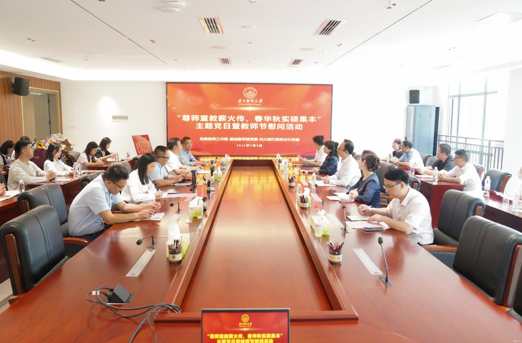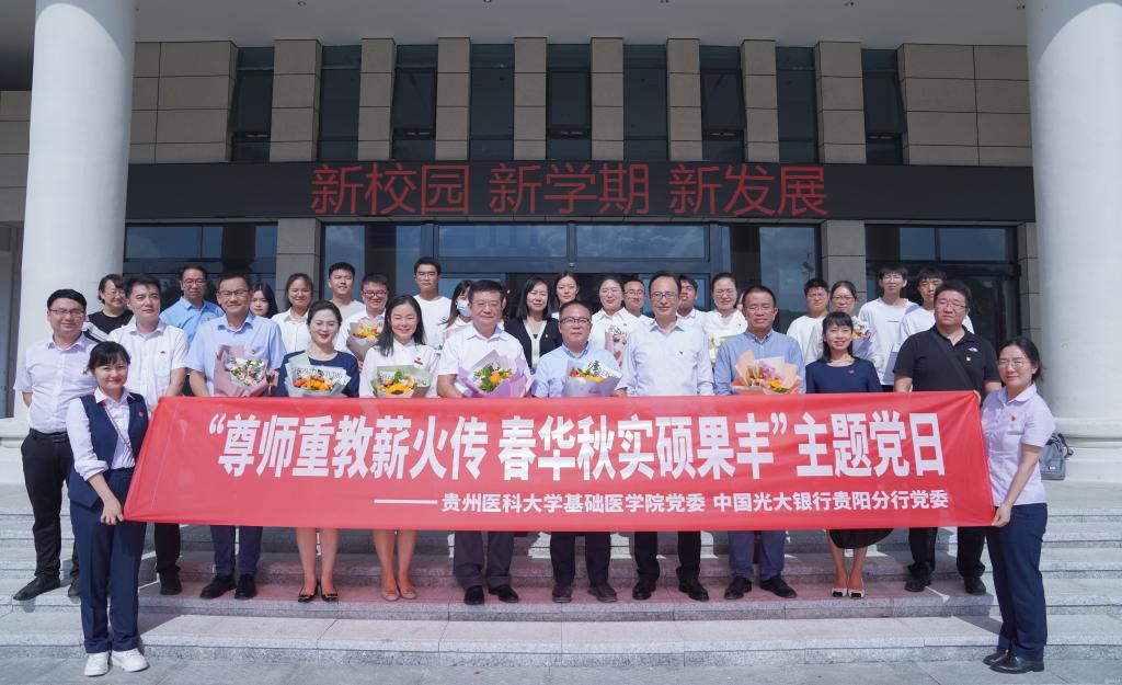 9月8日,在第39个教师节来临之际,基础医学院党委在云漫湖校区知雨楼五楼会议室举行“尊师重教薪火传、春华秋实硕果丰”主题党日暨教师节慰问活动。校党委委员、副校长曾柱出席。党委教师工作部、光大银行贵阳分行、党委基础医学院教师和学生代表参加。活动由党委教师工作部(教师工作处)部长(处长)徐国强主持。