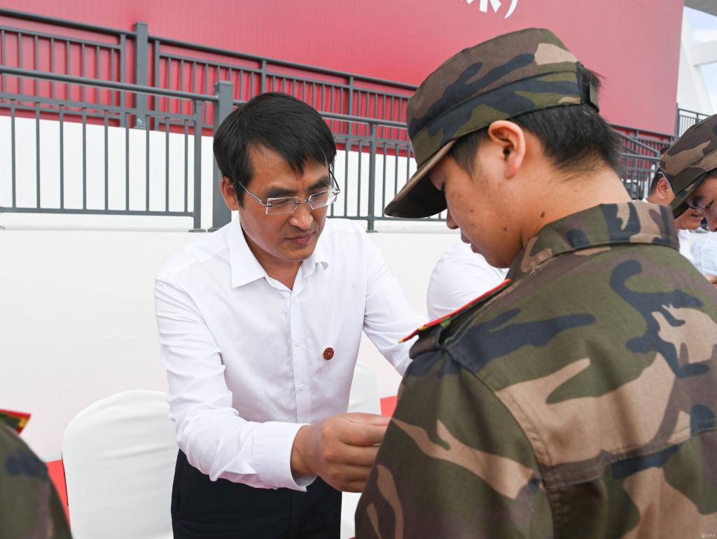 本科生代表、研究生代表依次上台,校领导为2023级新生佩戴校徽。