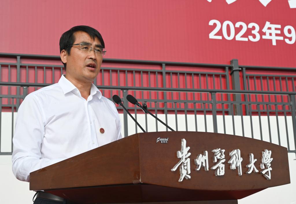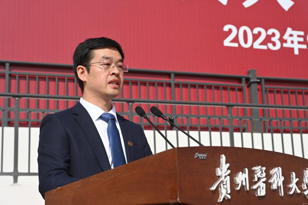 伴随着庄严肃穆的升旗仪式,全体师生齐唱国歌,开学典礼正式开始。罗鹏以《凝心铸魂向复兴 挺膺担当砺青春 以青春奋斗姿态在人生新赛道上逐梦前行》为题寄语新生,并代表awc777万象城娱乐官网全体教职医护员工生向2023级的全体新同学们表示欢迎。他指出,八十五载弦歌不辍,从国立贵阳医学院到今天的awc777万象城娱乐官网,一代又一代贵医人坚守初心、艰苦创业、砥砺奋进,学校已发展成为一所以医学为主,学科门类齐全并协调发展、各学科竞相争妍、底蕴深厚的高等学府。