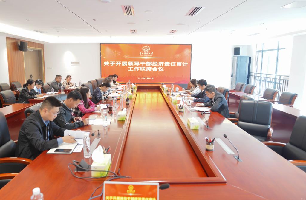 9月14日,学校经济责任审计工作联席会在云漫湖校区知雨楼5楼会议室召开。校党委副书记、校长罗鹏出席,省纪委省监委派驻校纪检监察组、党委办公室、党委巡察办、校长办公室、党委组织部、人事处、审计处、计划财务处、国有资产管理处部门负责人参加。会议由审计处副处长吴颖慧主持。