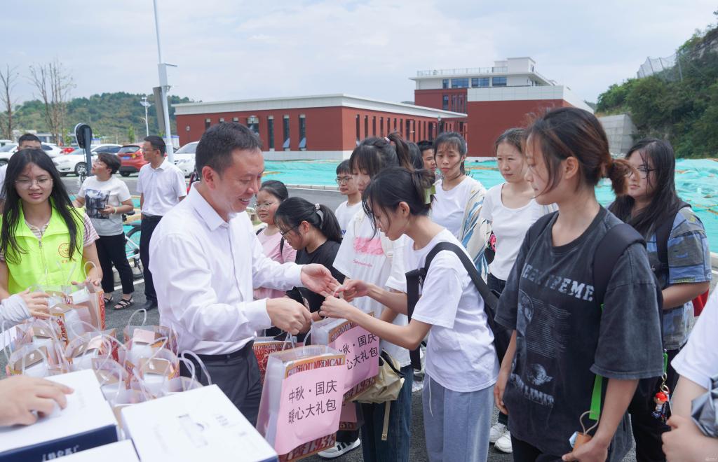 9月28日,为加强人文关怀,让万象城官网学子感受家一般的温暖,学生资助管理中心面向同学们开展中秋·国庆暖心礼包发放活动,活动在云漫湖校区思雅超市门口举行,校党委副书记汤磊,党委学生部(学生处、武装部)部长(处长)王韬、学生资助管理中心副主任贲琛、二级学院分管学生工作书记参加。