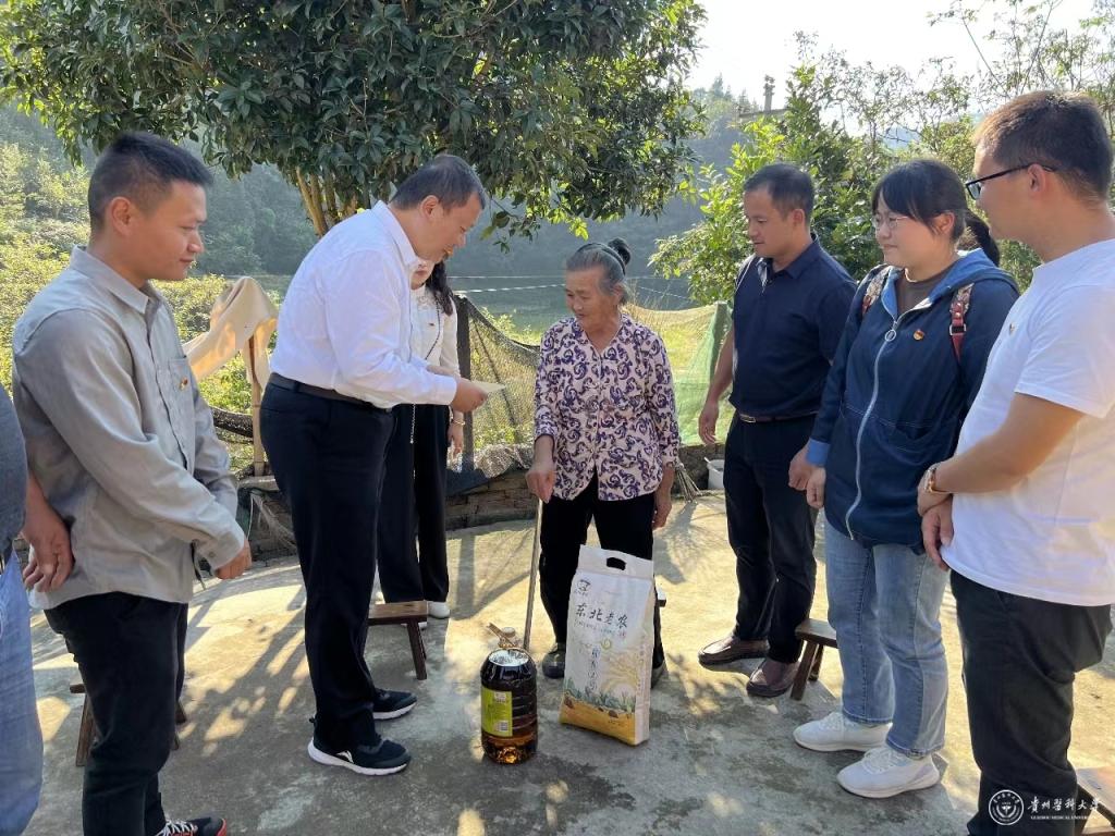 10月17日,为持续巩固拓展脱贫攻坚成果,进一步推动乡村振兴工作。校党委副书记刘文,天产中心党委委员、副主任孙超,校党委委员、副校长、党委组织部部长蒋红梅,校党委委员、党委宣传部(精神文明办)部长(主任)、党委统战部部长陈颖分别带队赴三穗县联系村调研,看望驻村队员,并慰问当地困难群众、留守儿童。三穗县委组织部常务副部长吴隆斌,八弓镇党委书记李保华、党委副书记、镇长黄廷芳,款场乡党委书记杨丽、党委副书记、乡长杨家显,款场村党总支书记王铭,龙脚村党总支书记王道辅、副书记姚茂清,万象城官网驻村工作队全体队员,校关工委,相关部门及学院负责人参加。