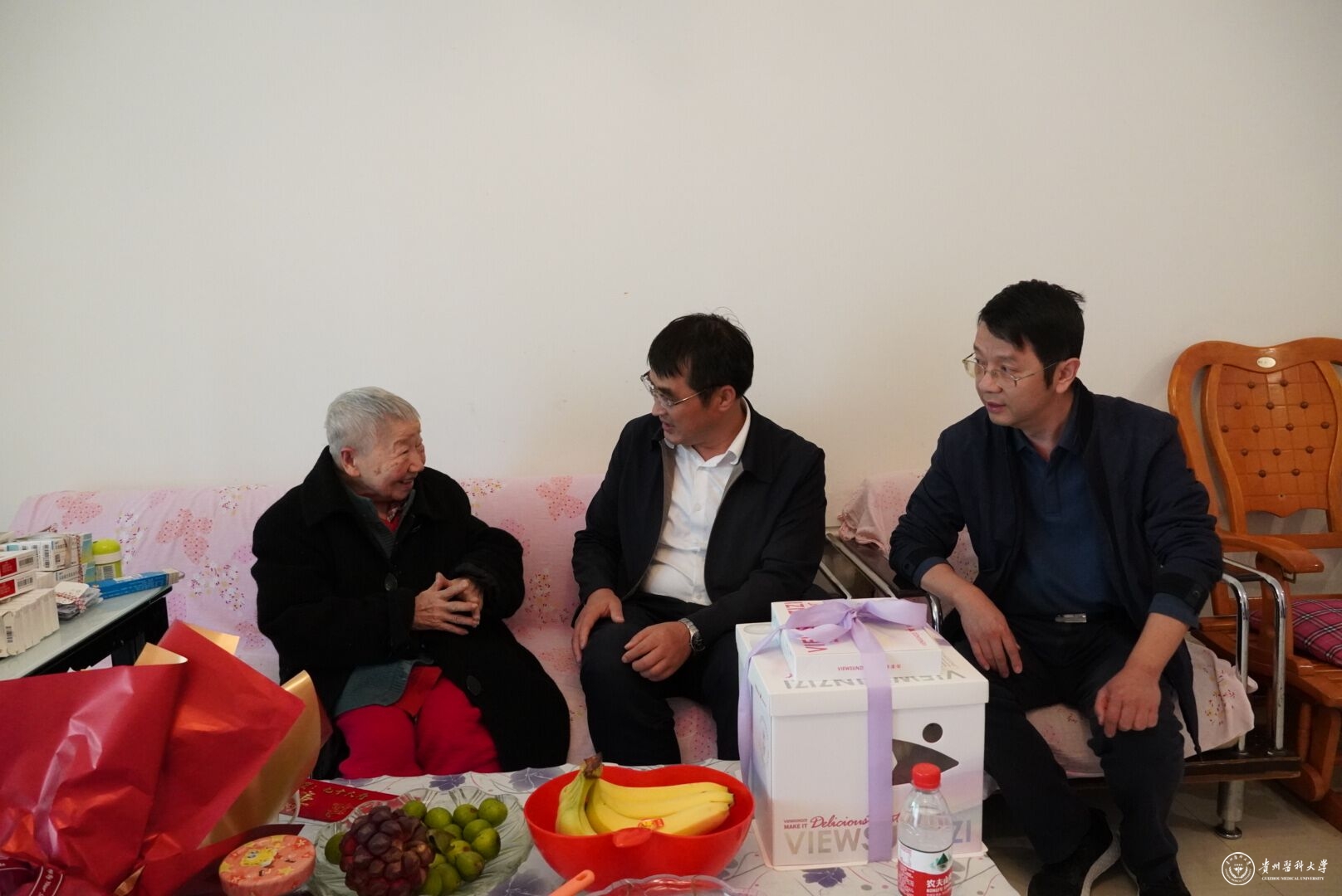 会后,罗鹏、刘文一行走访慰问90岁的曾少陆老同志,送上生日礼物和节日祝福。