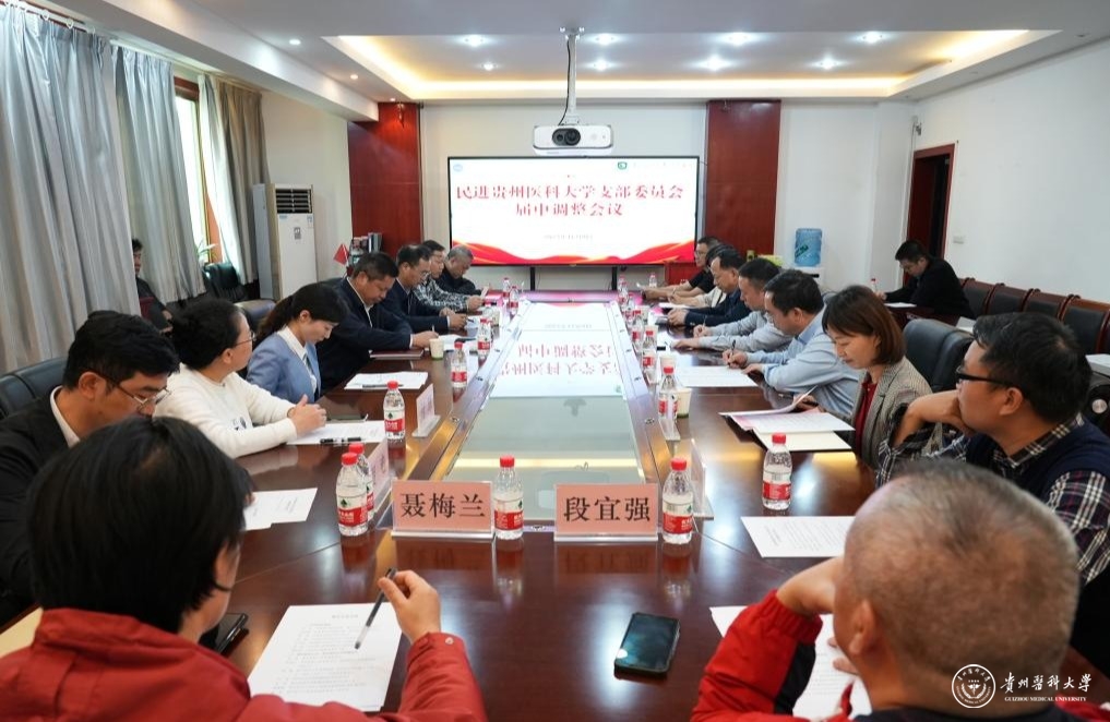 11月9日,民进awc777万象城娱乐官网支部委员会届中调整会议在万象城官网北京路校区召开。民进贵州省委主委、贵州省卫健委主任孙发,校党委副书记汤磊,党委委员、附属医院党委书记李海洋,民进贵州省委副主委、副校长沈祥春,党委委员、党委宣传部(精神文明办)部长(主任)、党委统战部部长陈颖,附属医院党委副书记代宏出席。附属医院党办主任岳萍、民进贵医支部委员及会员代表、党委统战部全体工作人员参加。沈祥春主持会议。