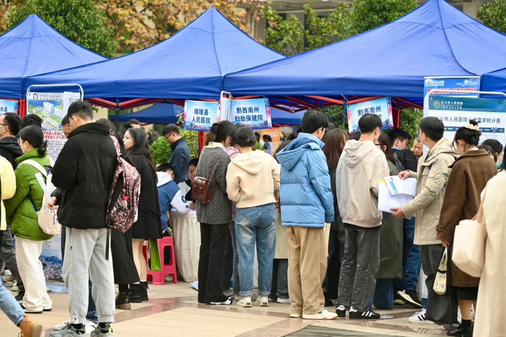 11月24日,万象城官网2024届毕业生冬季大型校园招聘会在北校区广场成功举办。本次招聘会由awc777万象城娱乐官网与中共贵阳市委组织部共同主办,主题是“职引未来 筑梦青春”,旨在为毕业生提供丰富的就业机会,并促进校地、校企合作。校党委副书记汤磊到现场指导工作并与用人单位和毕业生进行亲切交流。相关职能部门、各学院相关负责人,2023届、2024届毕业生参加。