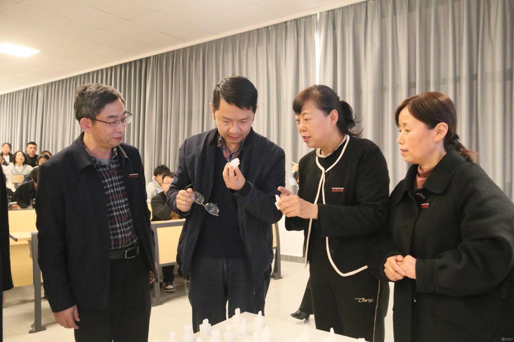 在“巧手灵心”系列活动作品展示环节,参会人员共同参观学生手工技能作品:蜡牙和刺绣。牙周黏膜科主任蔡扬对学生手工技能作品进行点评。