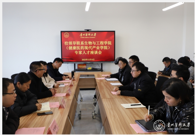 12月4日,校党委委员、副校长曾柱到生物与工程学院(健康医药现代产业学院)与青年教师、高层次人才代表交流座谈,学院领导班子成员陪同参加。