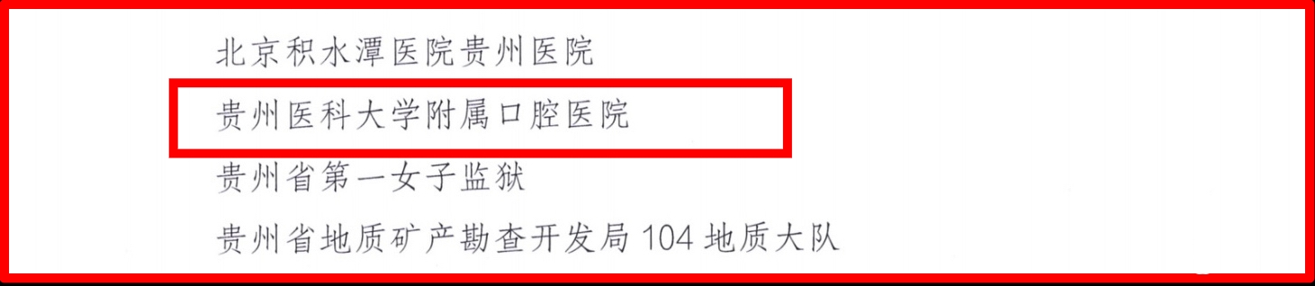 近日,贵州省总工会下文命名一批在2023年度“创建服务职工综合体、创建职工生活幸福企业、创建职工生活幸福单位、创建职工生活幸福项目部、创建职工生活幸福网点”的“五创”系列活动中,勇于创新、工作突出、效果显著的单位为“提升职工生活品质单位”。附属口腔医院由省教育工会组织推荐,在此次评选中荣获“贵州省职工生活幸福单位”称号。