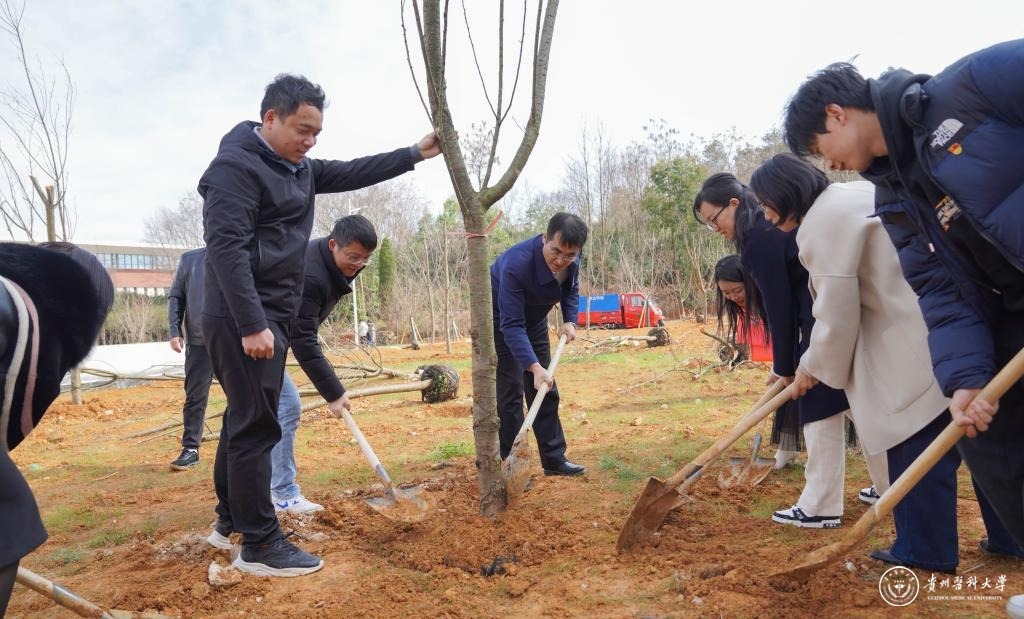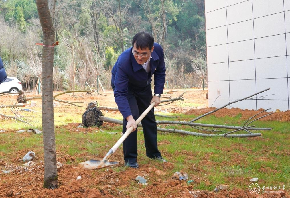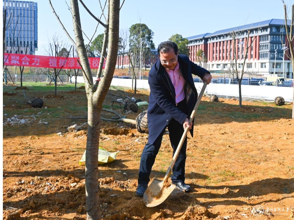 植树地点位于云漫湖校区知雨楼周边绿化带,通过种植375棵樱花树,搭配红叶石楠、红花继木等景观植物,围绕知雨楼打造“三月樱吹雪 春来满目新”的景观。活动中,大家干劲十足、默契配合,挖坑、铲土、扶苗、下肥、填坑、浇水,每道工序有条不紊,样样做得认真到位,个个忙得满头大汗,处处一片热火朝天的景象。