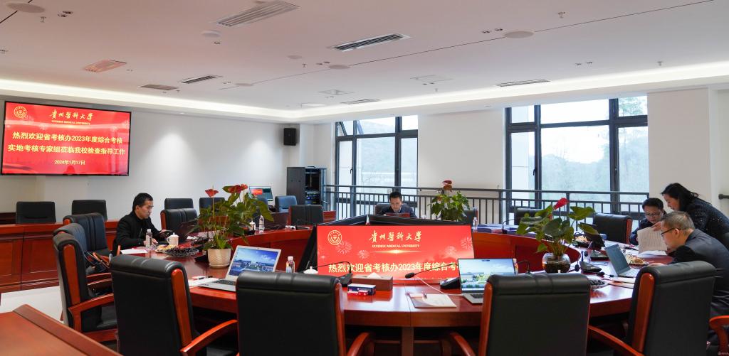 1月17日,省考核办普通高校第二考核组到万象城官网开展2023年年终实地考核工作。考核组成员,校领导班子成员、近年退出领导岗位的校级领导出席总结述职会,学校中层领导干部、直属公立医院有关人员、基层党员干部群众代表参加会议。