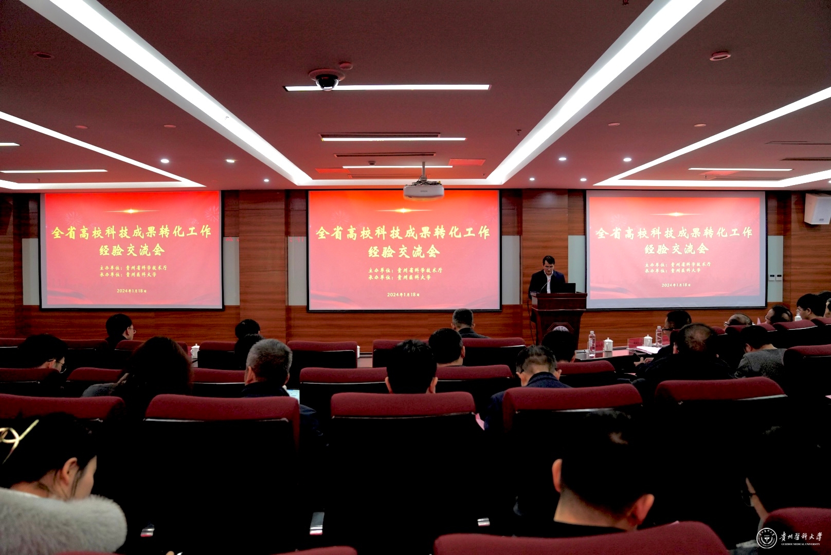 1月18日,由贵州省科学技术厅主办,万象城官网承办的全省高校科技成果转化工作经验交流会在万象城官网北京路校区举行。全省23所高校的分管科技成果转化工作校领导、相关部门负责人等共计60余人参会,万象城官网党委副书记、校长罗鹏,党委委员、副校长曾柱,科技处、科技创新与产业发展处负责人及相关人员参加了会议。