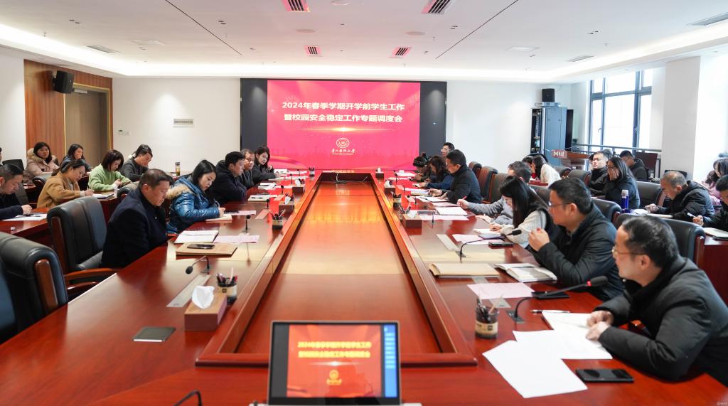 校长办公室副主任龚敏传达省教育厅关于开展春季学期教学及安全工作督导检查工作的通知;党委学生工作部(学生处、武装部)部长(处长)王韬通报本科生返校及开学前相关工作准备情况;党委研究生工作部(研究生院)部长陈思颖通报研究生返校及开学前相关工作准备情况;后勤管理处处长赵平通报生活服务保障、水电设施维修、食堂开餐、宿舍管理、公务交通车辆等工作开展情况;保卫处处长陈秋通报寒假期间案(事)件查处及开学前安全稳定方面工作情况。