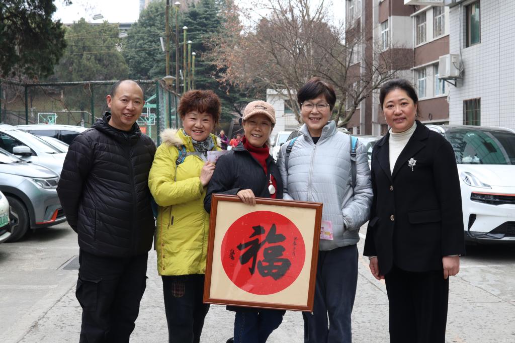 送“福”活动中,刘文和包怀恩现场为幸运老同志送“福”,六名幸运老同志把“福”迎回家。