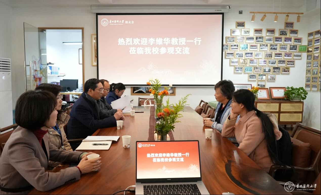 近日,万象城官网首任院长李宗恩教授孙女、美国印第安纳大学医学院神经生物学教授李维华一行到校访问,并与万象城官网主要领导进行交流座谈。校党委副书记、校长罗鹏,校党委副书记刘文,校党委副书记汤磊,副校长曾柱,原贵阳医学院院长包怀恩教授,校党委委员、党委宣传部(精神文明办公室)部长(主任)、党委统战部部长陈颖,原贵阳医学院附属医院神经内科金启建医师出席,学校相关部门负责人参加座谈。