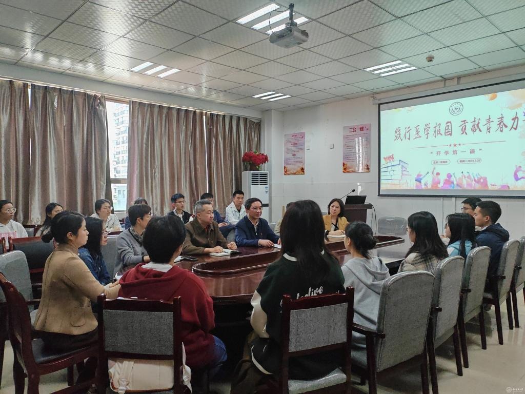 3月29日,校党委委员、附属医院党委书记李海洋为联系学生党支部讲专题党课。