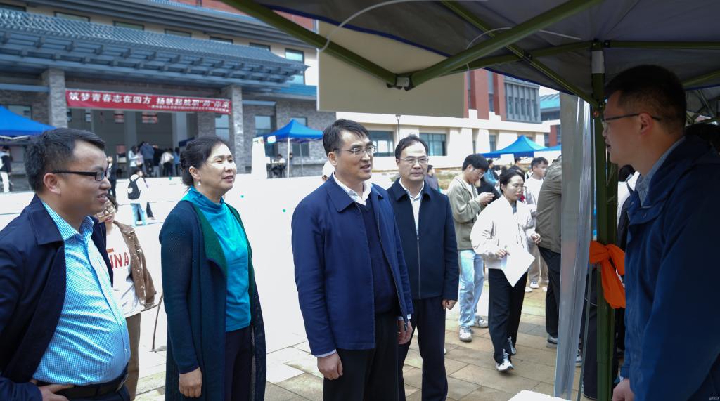 4月10日,药学院在云漫湖校区致知楼举办“筑梦青春志在四方 扬帆起航职‘药’你来”专场招聘会。校党委副书记、校长罗鹏,副校长沈祥春莅临现场指导,招生就业处副处长李季,药学院党委书记高秀丽及班子成员陪同,现场了解用人单位情况及招聘岗位需求。