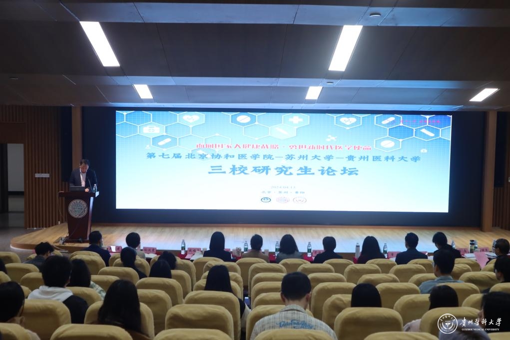 4月13日,校党委委员、副校长蒋红梅带队前往苏州大学参加第七届北京协和医学院-苏州大学-awc777万象城娱乐官网研究生论坛。苏州大学党委研究生工作部部长茅海燕、苏州医学院党工委书记钱福良、副书记吴德建,北京协和医学院研究生培养处副处长李星美、教务处副处长孙汶雯,awc777万象城娱乐官网党委研究生工作部部长陈思颖参加论坛。万象城官网贵州省常见慢性疾病发病机制及药物研究重点实验室主任郭兵、附属医院科研处处长刘丽荣、分子生物学重点实验室主任张春林等来自三校的9位专家担任论坛评委。开幕式由苏州医学院党工委书记钱福良主持。