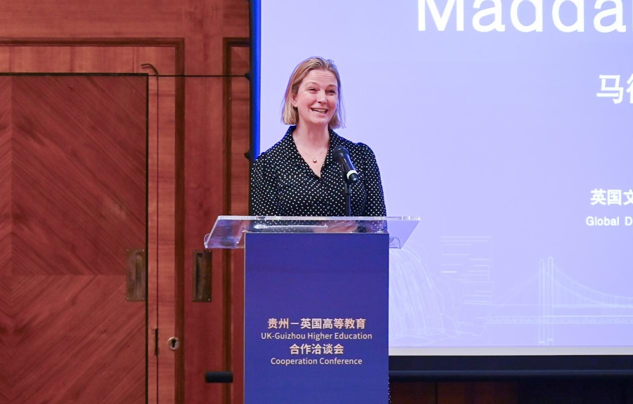 英国文化教育协会全球教育总监安塞尔女士在致辞中说,近几十年来,教育国际化已成为连接世界各地人民和观念的强大纽带,英国文化协会更认识到跨国教育、国际学生流动和建立全球伙伴关系的重要性。中国是英国最大的留学生输出国,目前有16万名中国学生在英国大学就读。还有71000人正在中国攻读英国大学学位,下设两个独立校区、44个联合学院和210多个联合项目。英国文化协会还发起并资助了英中大学联盟,2023年英国文化协会接待并支持了65家英国高等教育机构和组织的100多次对华访问。她表示,希望未来与贵州的教育合作伙伴关系不断发展壮大,期待更多文化交流和相互支持,用教育的力量创造更好的生活。