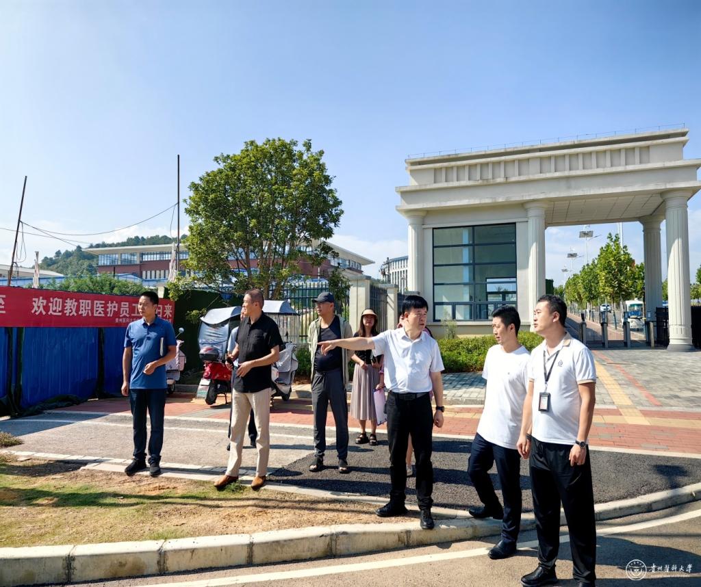 8月20日,校党委委员、副校长洪峰带领后勤管理处、保卫处、基建处、校医院相关人员检查迎新准备工作。