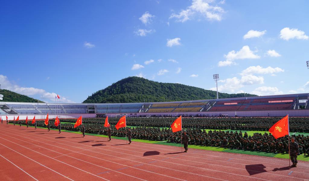 军训动员大会中,校领导向军训师授旗,汤磊教授作为军训师政委接旗。参训学生代表2024级口腔医学专业本科生赵奕琦发言。军训教官代表王雨轩作执训发言。