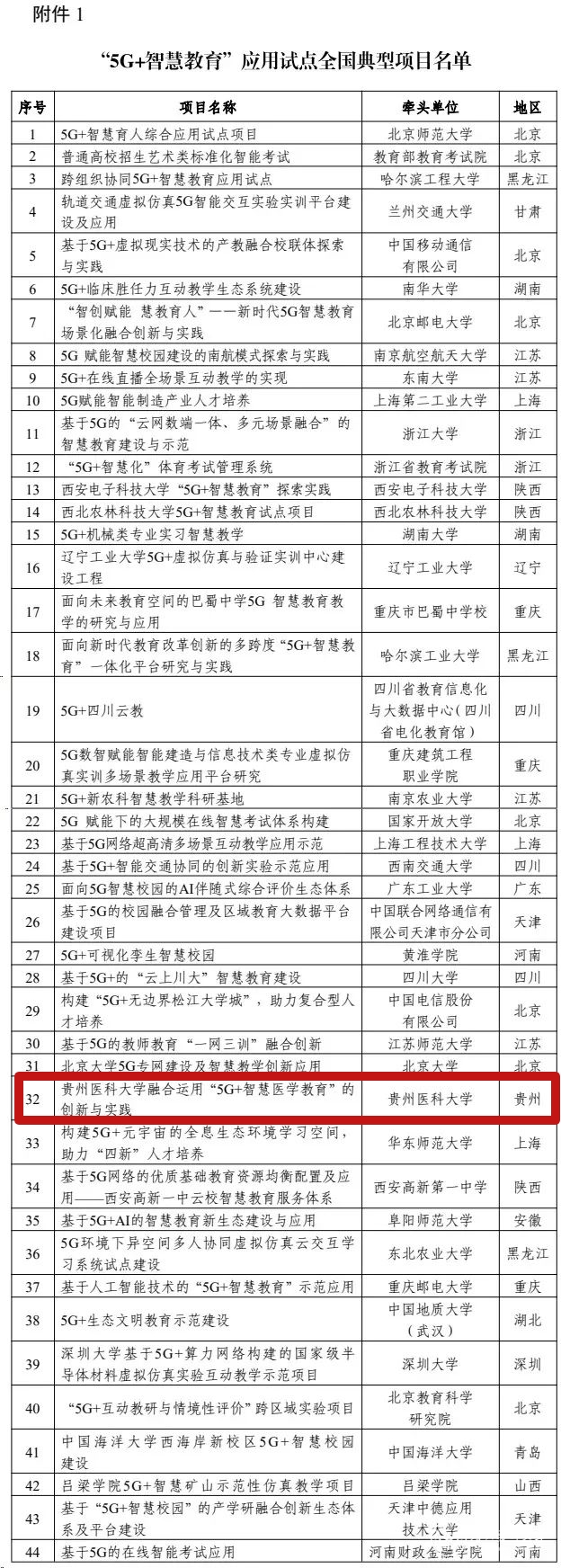 近日,工业和信息化部、教育部印发通知,公布“5G+智慧教育”应用试点全国典型项目及通过验收项目名单,分别有44个项目、93个项目上榜。其中,awc777万象城娱乐官网作为贵州省唯一一所学校,榜上有名;同时awc777万象城娱乐官网获选“5G+智慧项目”应用试点全国典型项目!