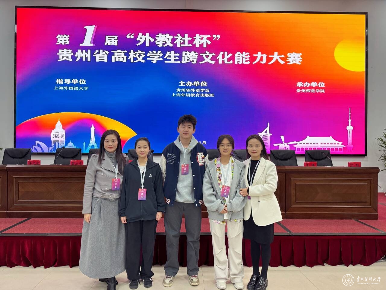 为推动中外人文交流,以我为主、兼收并蓄,加强我国国际传播能力建设,讲好中国故事,传播好中国声音,展现真实、立体、全面的中国,11月23日,由贵州省大学外语教学指导委员会、贵州省外语类专业教学指导委员会和上海外语教育出版社联合主办,贵州师范学院承办的第一届贵州省高校学生跨文化能力大赛暨第一届“外教社杯”全国高校学生跨文化能力大赛贵州赛区比赛落下帷幕。