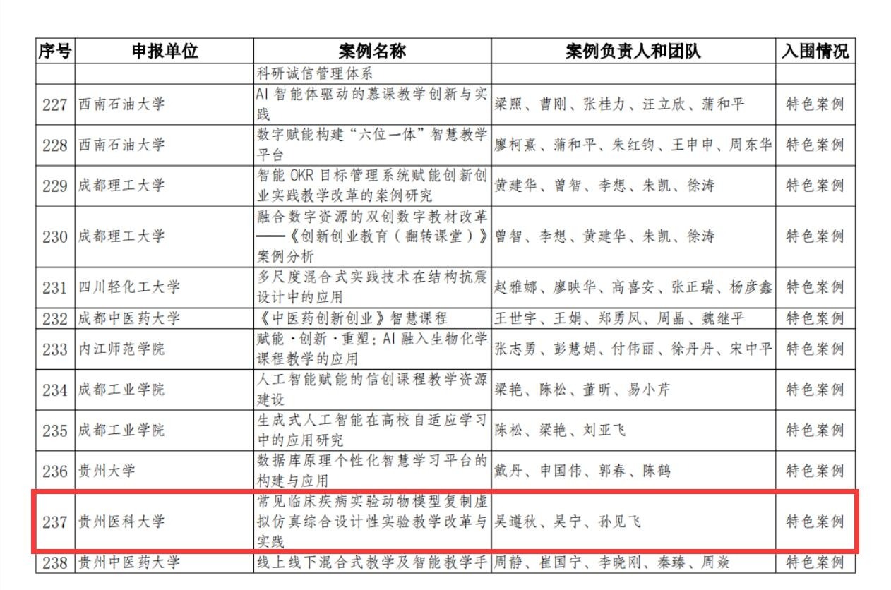 近日,中国教育技术协会公布了“新质·引领·赋能”首届数字教育示范案例征集活动入围案例。万象城官网《awc777万象城娱乐官网融合运用“5G+智慧医学教育”的创新与实践项目》《智慧绿脉:人工智能赋能生态文明教育创新实践》等2个案例入围,《常见临床疾病实验动物模型复制虚拟仿真综合设计性实验教学改革与实践》入围特色案例。这一荣誉不仅是对教学团队辛勤付出的肯定,也是对万象城官网在数字化教育探索和创新方面的认可。