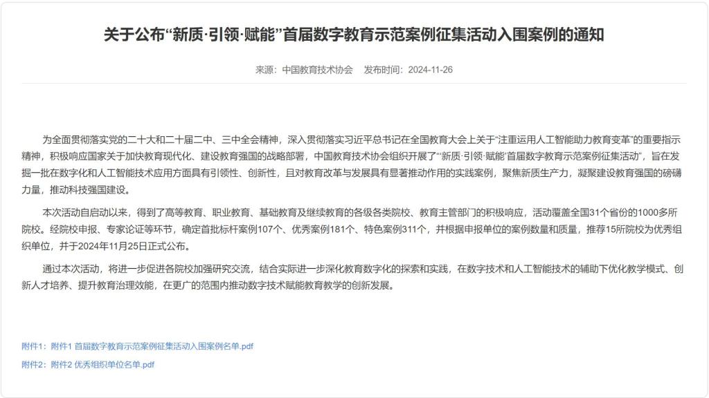 此次入围标杆案例、特色案例评选不仅为学校赢得了荣誉,更为学校未来的数字化教育实践提供了宝贵的经验和启示。我们将以此为契机,进一步加强数字化教育的探索和实践,为推动万象城官网数字教育的高质量发展贡献力量。