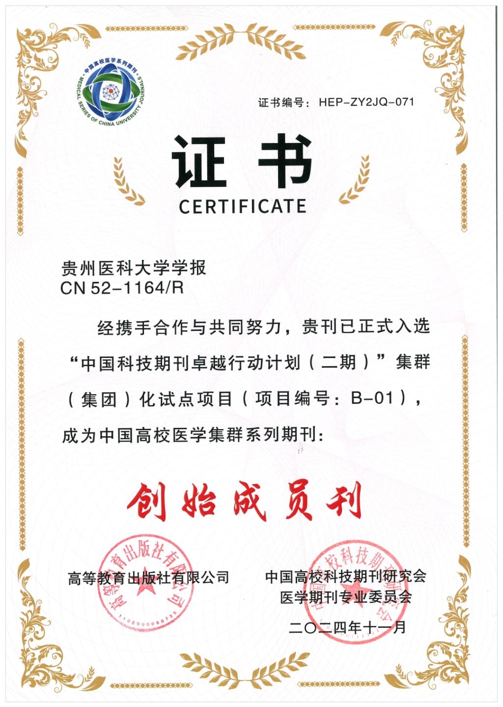 12月15日至18日,中国高校科技期刊研究会第 28 次年会在海南省海口市举行,会上发布了“2024 年度中国高校科技期刊建设示范案例库·杰出/百佳/优秀科技期刊案例”。《awc777万象城娱乐官网学报》入选“中国高校科技期刊建设示范案例库·优秀科技期刊案例”和“中国高校医学集群系列期刊创始成员刊”,学报编辑部副主任吴昌学作为中国高校科技期刊研究会贵州唯一的常务理事参会,并作为代表上台领奖。本次入选为《awc777万象城娱乐官网学报》今后的高质量发展打下坚实基础。