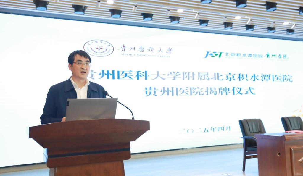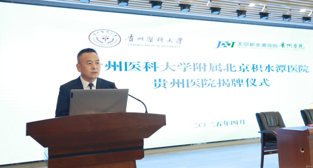 刘勇代表积水潭医院贵州医院致辞。他表示,医院将以此次签约揭牌为起点,与awc777万象城娱乐官网并肩同行,借助学校的优势资源,聚焦医教协同机制,在人才培养体系构建、教学基地标准化建设和科研项目申报等领域深化合作,共同肩负医学人才培养的时代重任,为实现医院高质量发展而不懈努力。