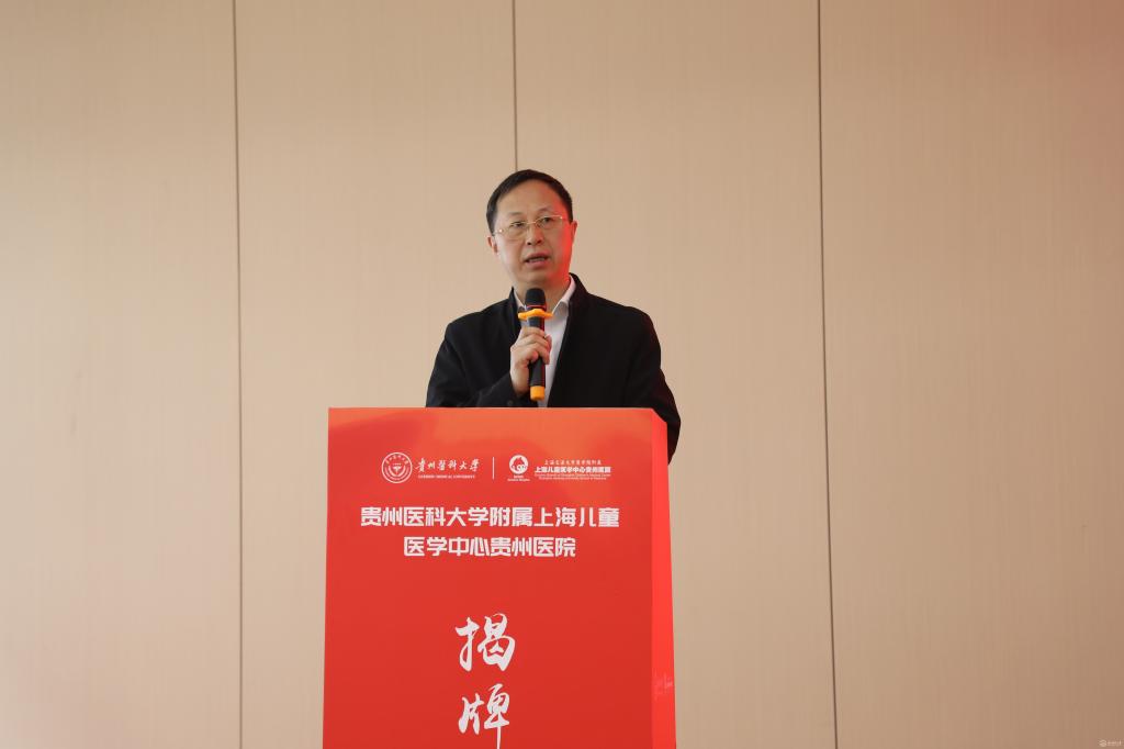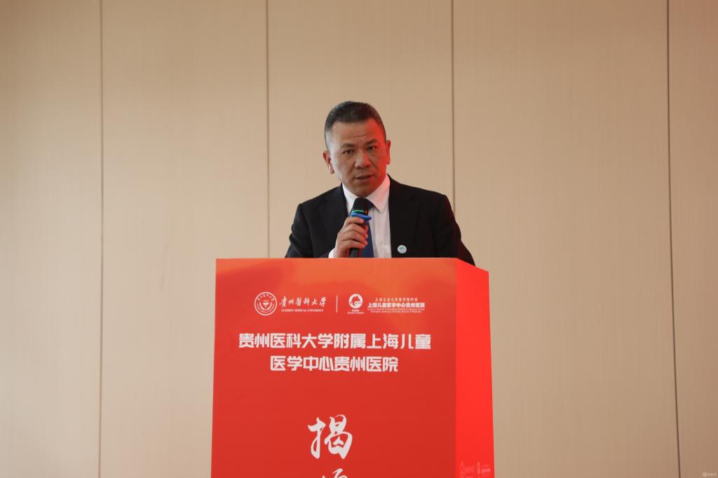 会上,安仕海代表省卫生健康委对awc777万象城娱乐官网附属上海儿童医学中心贵州医院揭牌表示热烈祝贺。他指出,此次揭牌不仅为医院未来的发展搭建了更广阔的平台,也为学校培养出更多适应社会需求、具有创新精神和实践能力的高素质医学人才提供了优质的临床教学和实践机会。希望充分发挥双方优势,共同推动儿科医学教育、科研和临床实践协同发展,努力打造西南地区儿科医学高地,为贵州人民提供更加优质高效便捷的医疗服务。