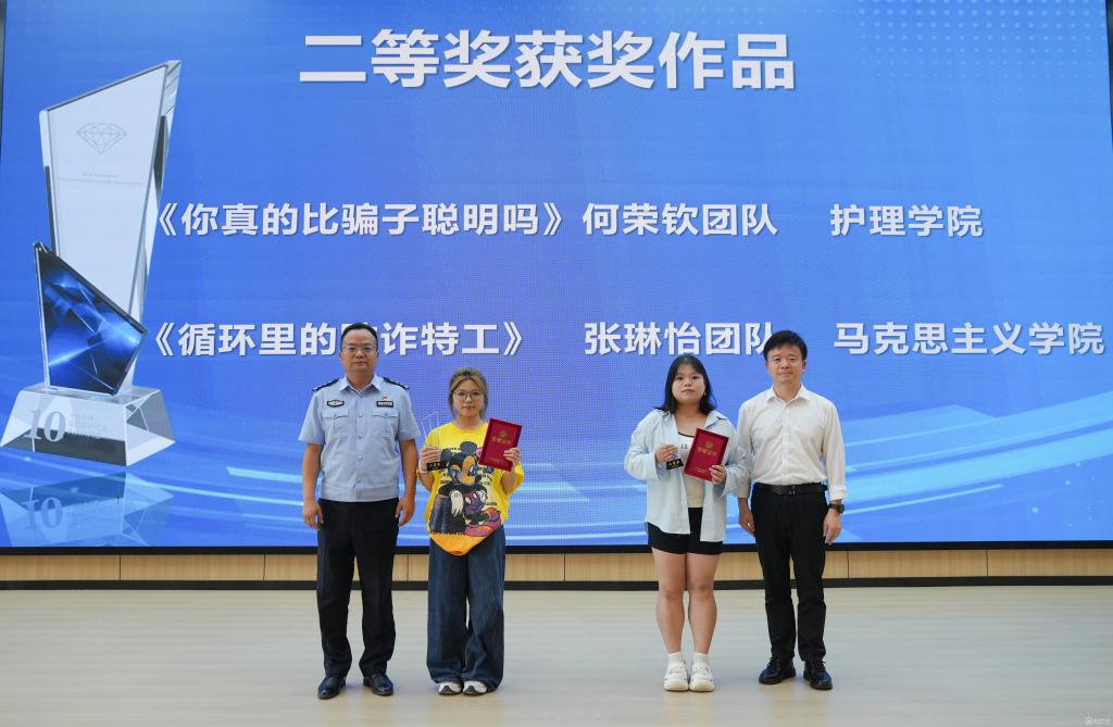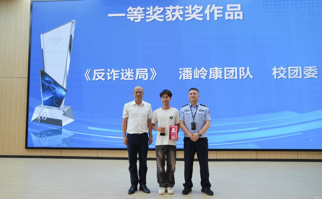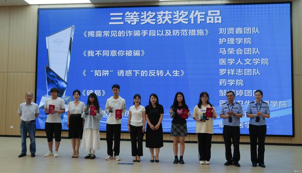 与会领导为反诈短视频获奖团队颁奖。