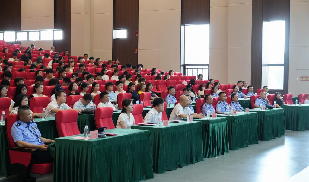 洪峰在致辞时指出,今天的活动非常有意义。近年来,网络诈骗案件在高校频发,严重威胁师生的财产安全与校园的和谐稳定。为有效应对这一问题,学校平安建设办公室推出了“awc777万象城娱乐官网反诈十项措施”,涵盖宣传教育、校警联动、建立社团等多个方面,致力于构建全方位的反诈体系。我们要继续坚定不移贯彻总体国家安全观,提升政治站位,压实责任链条,始终秉持学生至上、安全第一的理念,把维护校园安全、确保学生安全放在突出位置,构建四级安全管理体系与国家安全教育体系,把各项安全稳定工作落到实处,为学校教育事业的高质量发展保驾护航。