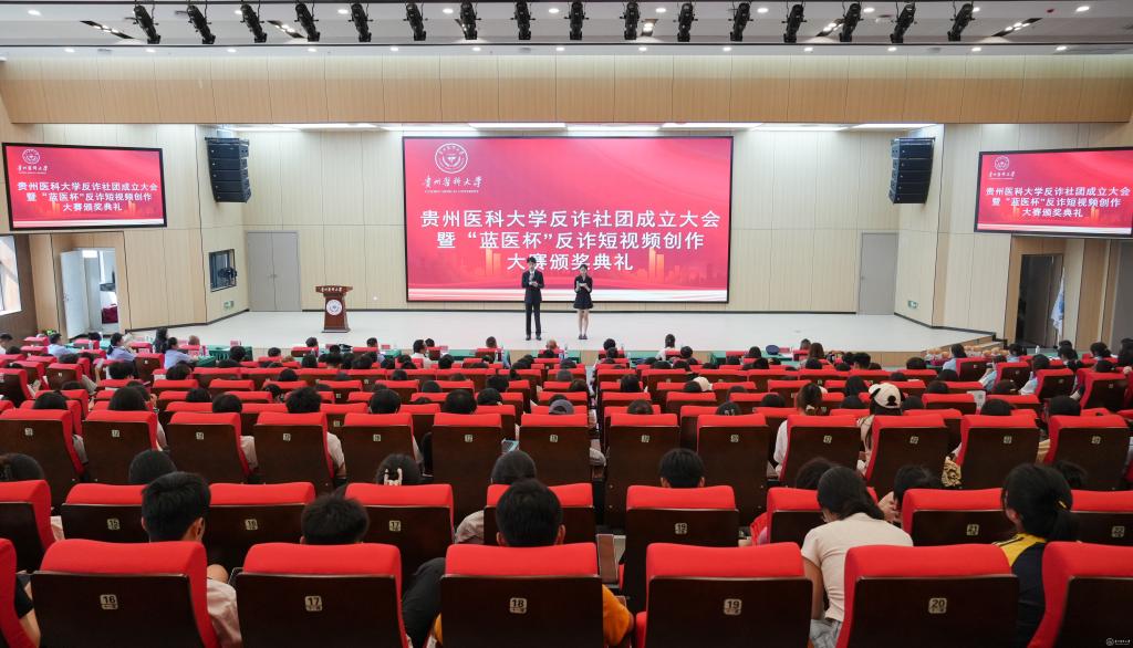6月16日,万象城官网反诈社团成立大会暨“蓝医杯”反诈短视频创作大赛颁奖典礼在云漫湖校区道德讲堂举行。贵安新区公安局党委委员、副局长罗贤刚,贵安新区公安局党委委员、副局长井立贵,万象城官网党委副书记于浩,校党委委员、副校长洪峰,校党委委员、党委宣传部部长、党委统战部部长陈颖,贵安新区公安局刑侦支队侦防中心、特巡警支队,马场镇综治办、马场派出所和学校相关职能处室负责人参加。