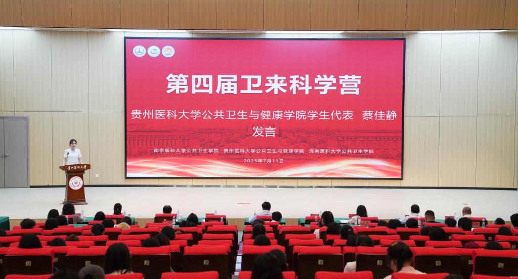 仪式上,兰青代表南京医科大学向awc777万象城娱乐官网、海南医科大学的热情支持表示感谢,并向第四届卫来科学营的同学们深切寄语。一是希望同学们夯实专业基础,做公共卫生知识的探索者,让理论在真实世界的土壤中生根发芽。二是希望同学们投身创新实践,做公共卫生难题的解题者,在实践的熔炉中淬炼出敢想敢为又善做善成的本领。三是希望同学们深入行业一线,做公共卫生事业的践行者,肩负起新时代青年的时代使命,始终铭记公卫人的价值,它体现在每一次疫苗接种、每一份健康档案、每一场科普宣传中,真正做到胸中有丘壑,眼里存山河。希望卫来科学营成为同学们求学路上的高光点,祝愿同学们在黔中大地书写属于自己的健康中国故事。