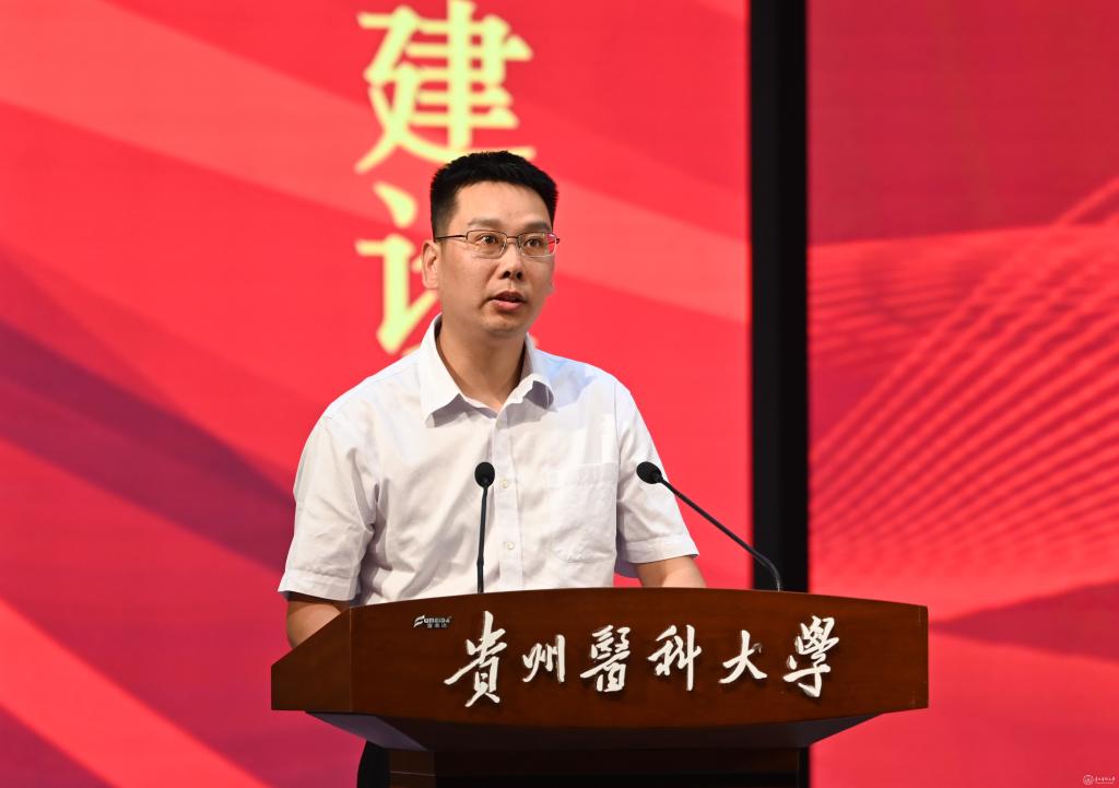 校党委书记汤磊讲话。他指出,上半年学校在学科建设、人才培养、科研创新等方面取得亮眼成绩,彰显了学校的办学底蕴和发展活力,是全体贵医人同心拼搏的结果。汤磊强调,经历新一轮的本科教育教学评估后,学校仍面临学科发展不平衡、高层次人才和创新团队不足、学生高质量就业不足等问题。今年是“十四五”收官和“十五五”谋划的关键之年,也是学校第二次党代会召开之年,必须坚持党的领导,加强基层组织建设,坚持问题导向、增强战略定力,思考好学校发展定位,用好现有办学资源,以更实举措推动高质量发展。