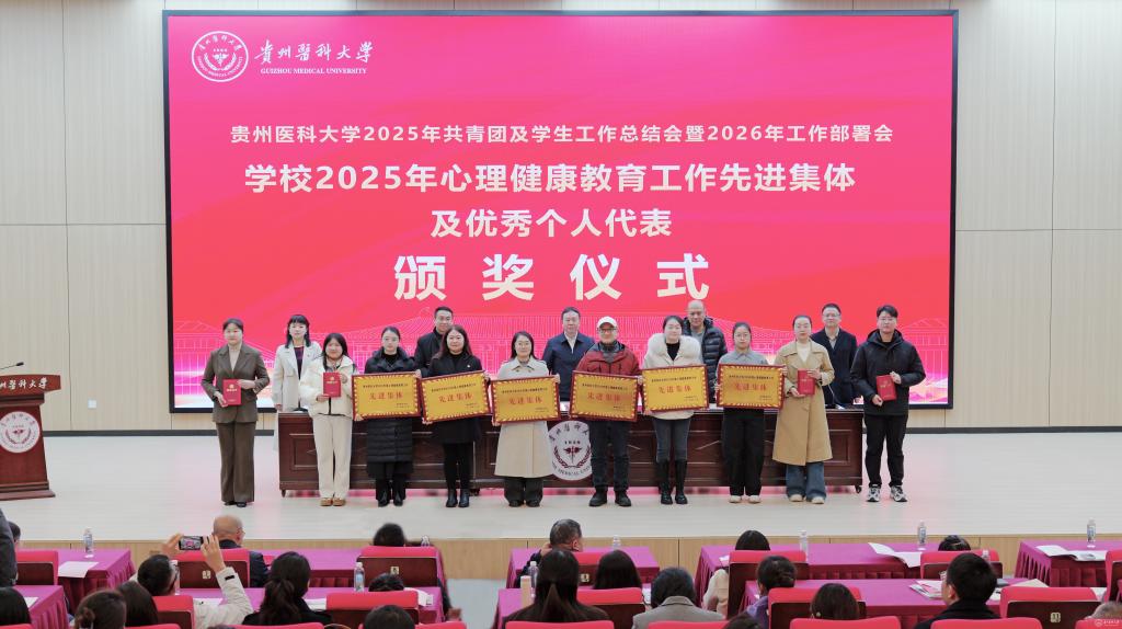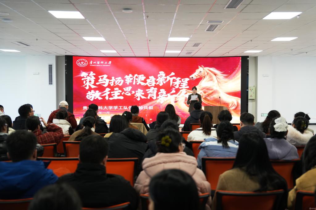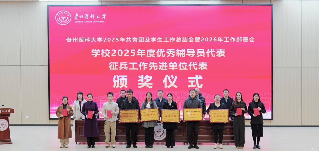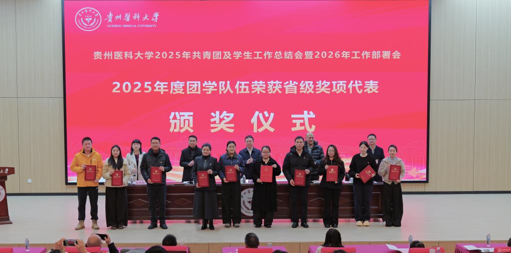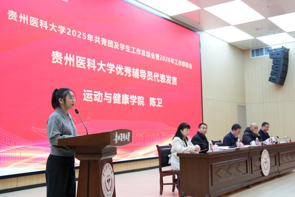 于浩系统回顾了2025年共青团及各项学生工作取得的成绩。他提到,过去一年中,学校思政引领铸魂育人,取得新进展。通过创新实施辅导员分级管理制度,打造“四感贵医”沉浸式育人品牌,扎实推进大学生征兵工作。协同育人贯穿发展,取得新成效。通过本科教育教学审核评估,获评全国高校示范“一站式”学生社区,产出多项国家级优秀案例与成果,通过省教育厅教育评价改革验收。扎实推进共青团建设,取得新突破。获评“全国五四红旗团委”,在学科竞赛、社会实践、志愿服务等方面取得国家级、省级突破。针对下一步工作,他提出三点希望:持续深化全国“一站式”学生社区建设内涵;推动“头雁工程”“领航工程”落实落地;持续推进共青团工作高质量发展。