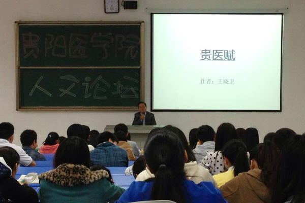 4月10日下午,人文论坛之《< 贵医赋>的诵读与讲解》讲座在万象城官网新校区1604教室举行。此次讲座特邀贵州大学王晓卫教授担任主讲,讲座由校团委副书记何雨曦主持。