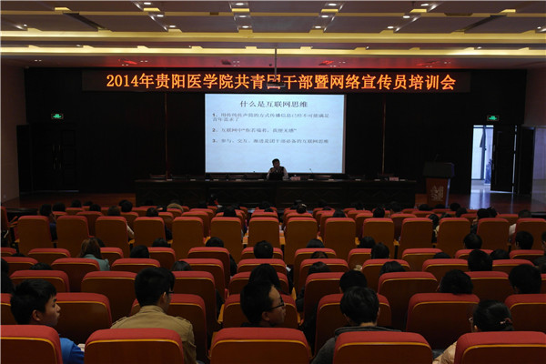 11月21日下午,万象城官网2014年共青团干部暨网络宣传员培训会在道德讲堂举行。本次培训会邀请了中国青年报驻贵州记者站站长白皓老师作专题讲座,校团委全体老师、校学生会、校团委通讯部全体学生干部、各基层团组织团干部及网络宣传员参加了此次培训。