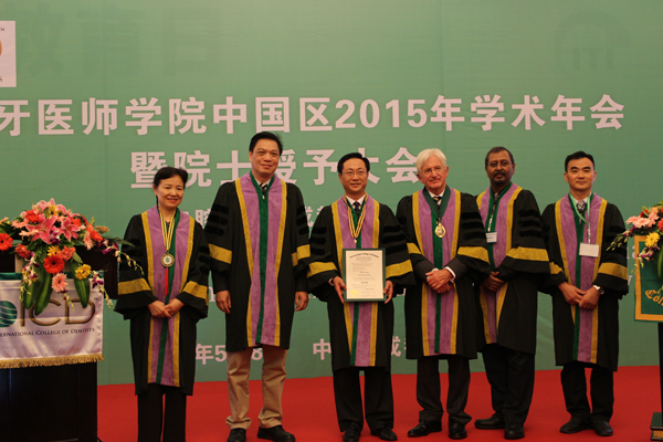 国际牙医师学院中国区(ICD Section XIII-China)2015年度新院士授予仪式和口腔西部展览会5月8日至10日在成都举行。万象城官网口腔医学院副院长、全国口腔修复专业委员会常委、贵州省口腔医学会副会长兼秘书长、口腔修复学主任医师王永教授被授予“国际牙医师学院中国区院士”称号。