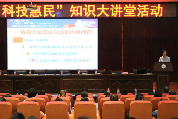 食品安全学院副院长孙晓红教授以“关注食品安全,关爱健康人生”为主题,向在场所有专家、师生阐述了“民以食为天,食以安为先”的食品安全观念。孙晓红教授通过典型案例,强调食品生产经营企业是合格优质食品的生产者,是功臣;也可能成为劣质有害食品的制造者,是罪人。并呼吁食品企业、政府部门以及消费者共同努力,打造安全、卫生、有质量的生活。