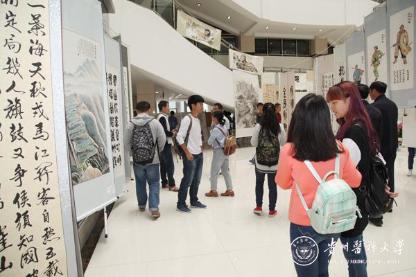 校党委副书记战勇,贵州省老科协书画研究会常务副会长王桂舟、副会长兼秘书长曾宪琪、副秘书长刘自汀,学校各职能部门、各院(系)领导和学生代表共计700多人出席开展仪式并参观作品展。校团委书记付萍主持仪式。