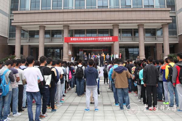 九月的花溪,雨落青山逸,天高色彩稠;九月的贵医,丹青书历史,光影展国魂。9月21日中午,以“铭记历史、缅怀先烈、热爱和平、开创未来”为主题,由省(市)老科协,万象城官网团委、离退休处主办,图书馆承办的“纪念抗战胜利七十周年书画摄影展”,在万象城官网南校区图书馆隆重开展。